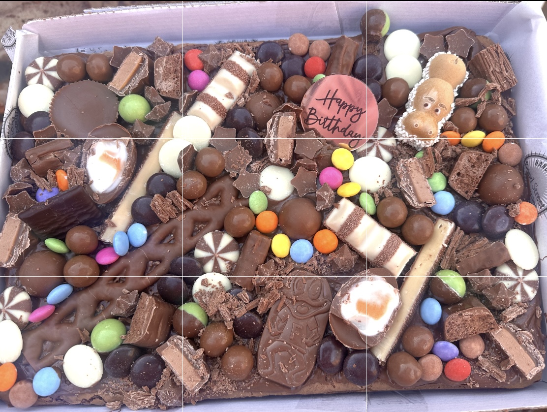A huge slab of our original brownie, smothered in Nutella with lots of different toppings. This is a real centrepiece and is perfect for any celebration or get-together.